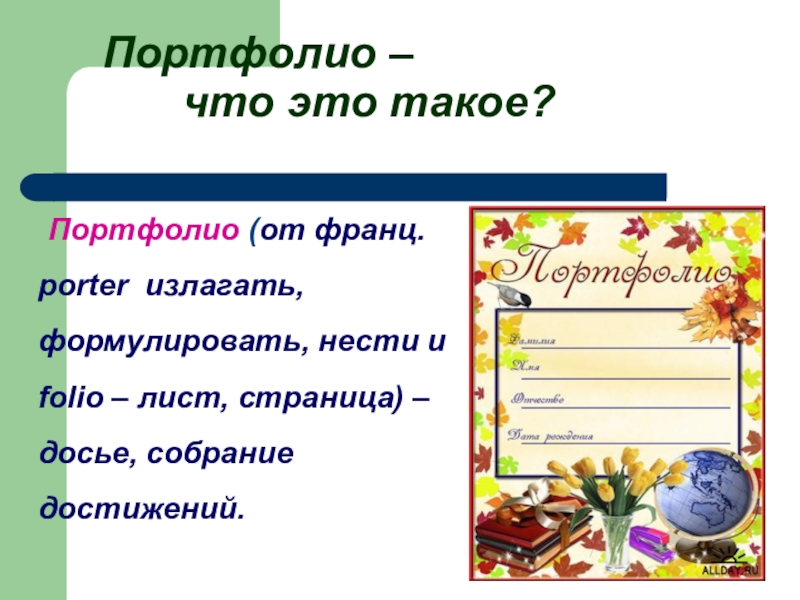 Понятие «портфолио» пришло к нам из Запанной Европы XV –