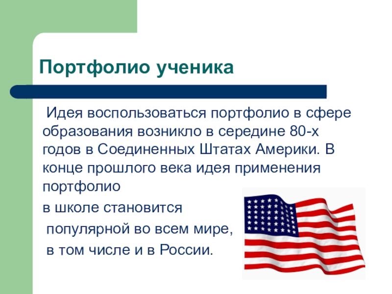 80-х годов в Соединенных Штатах Америки. В конце прошлого века идея применения портфолио