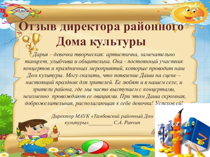 Директор МАУК «Тамбовский районный Дом культуры»_________ С.А. Ранчин