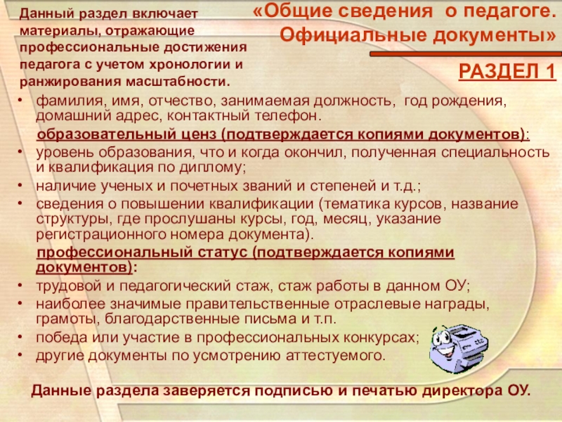Данные раздела заверяется подписью и печатью директора ОУ.