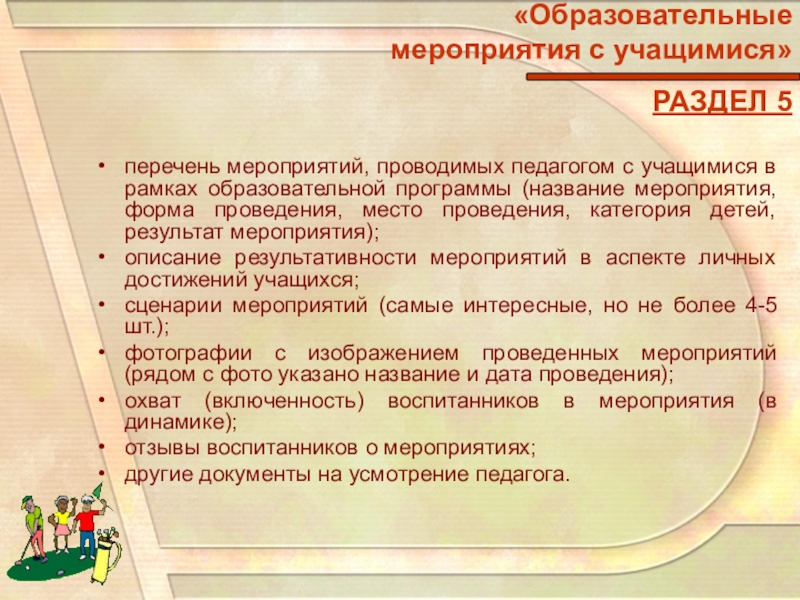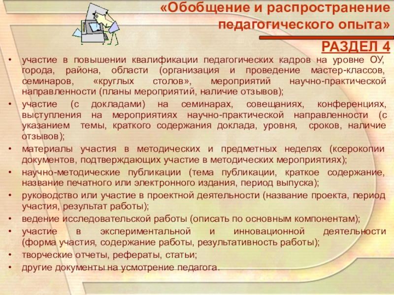 портфолио должно обязательно содержать результаты аналитической работы самого педагога;
