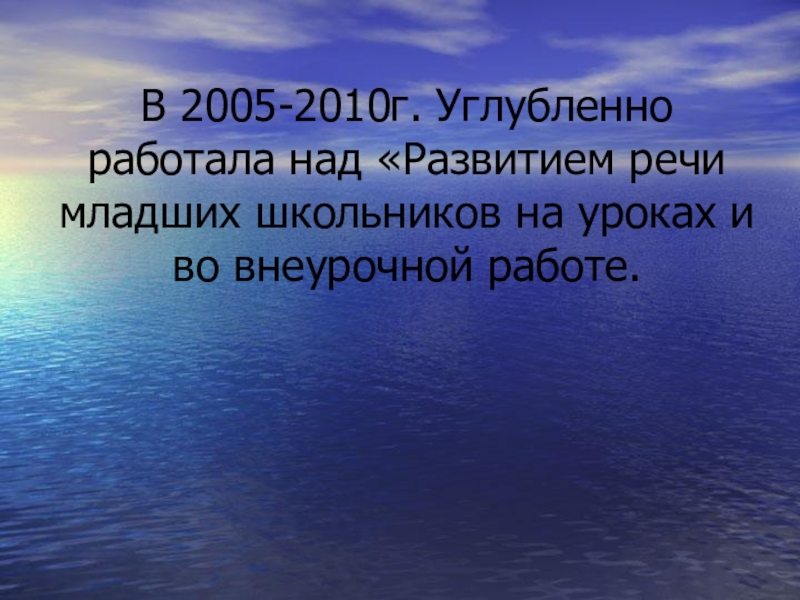 Слайд 5В 2005-2010г. Углубленно работала над «Развитием речи младших школьников на уроках