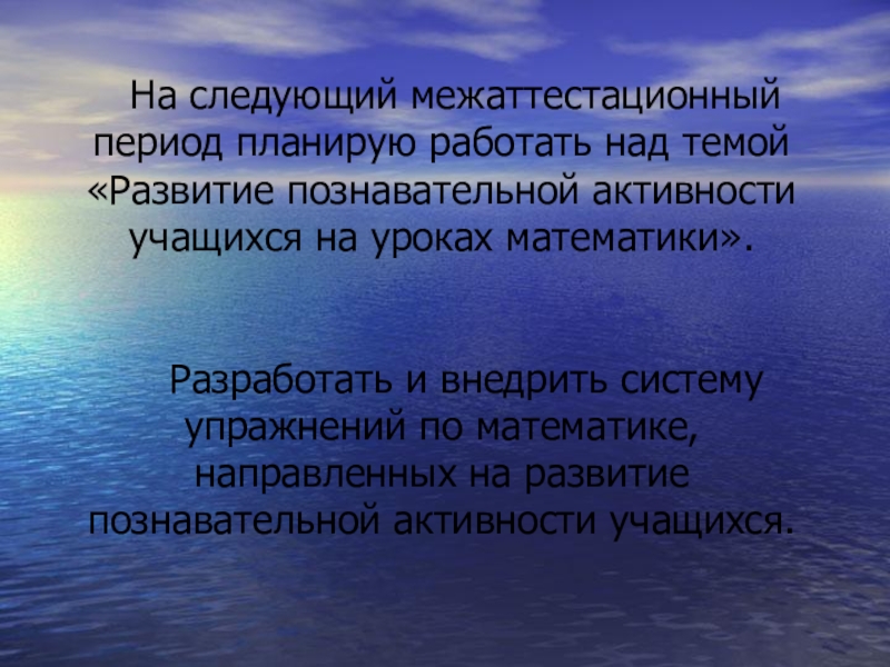 На следующий межаттестационный период планирую работать над темой «Развитие познавательной активности учащихся на уроках математики».