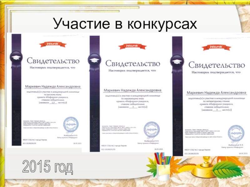Участие в конкурсах2015 год