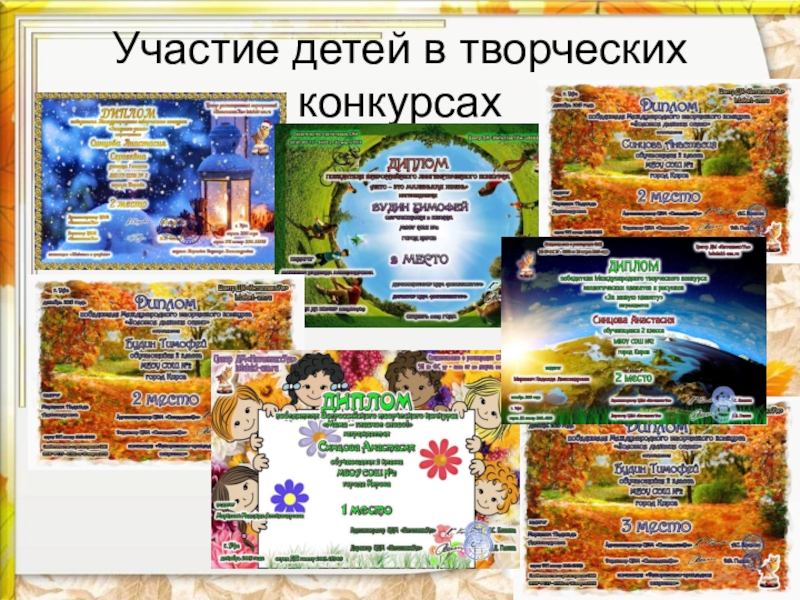 Слайд 13Участие детей в творческих конкурсах