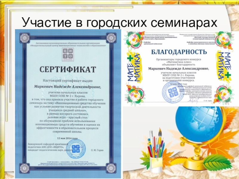 Слайд 8Участие в городских семинарах