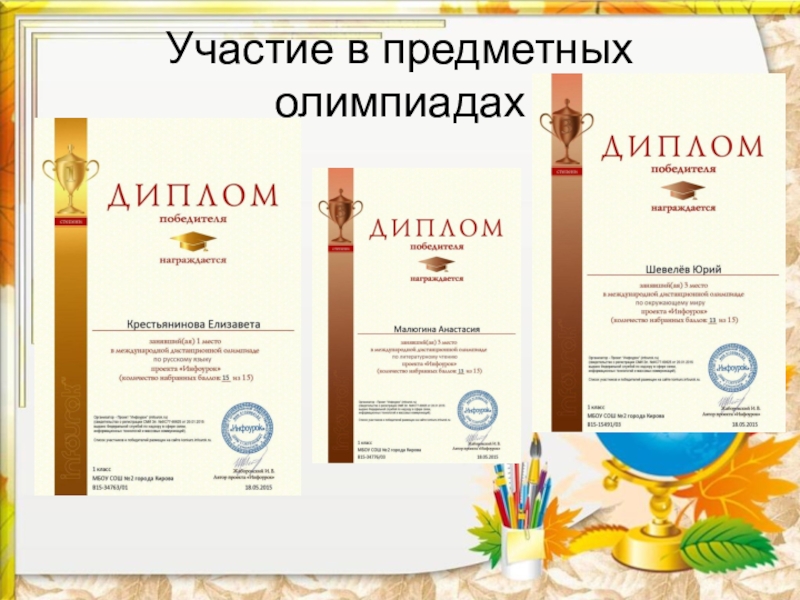Слайд 14Участие в предметных олимпиадах