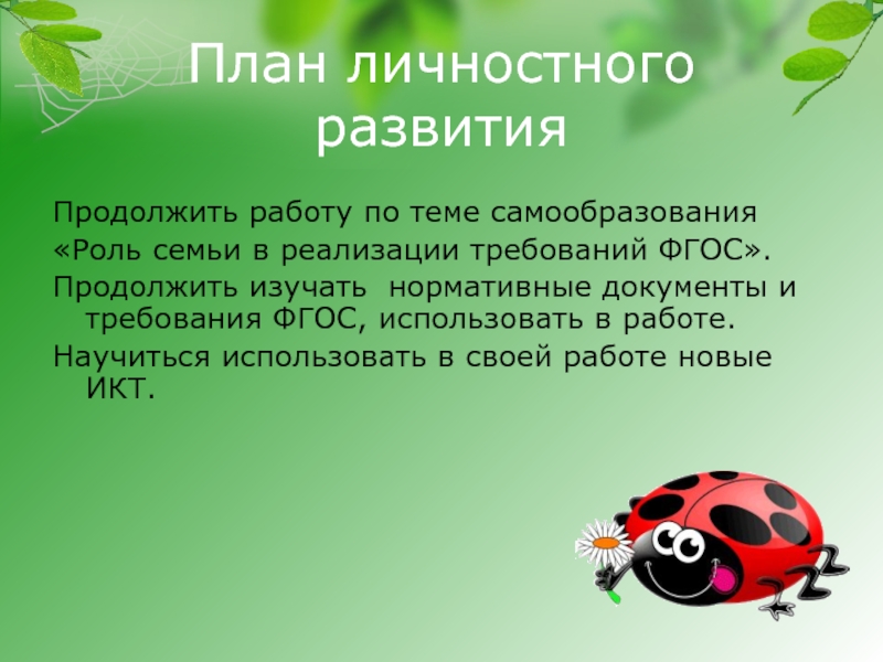 Продолжить изучать нормативные документы и требования ФГОС, использовать в работе.