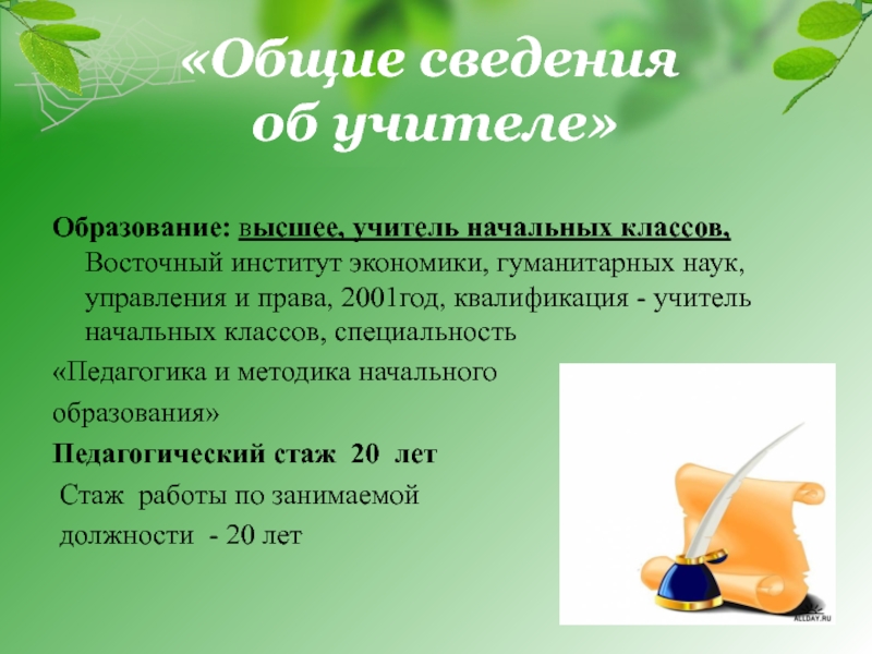 экономики, гуманитарных наук, управления и права, 2001год, квалификация - учитель начальных классов, специальность