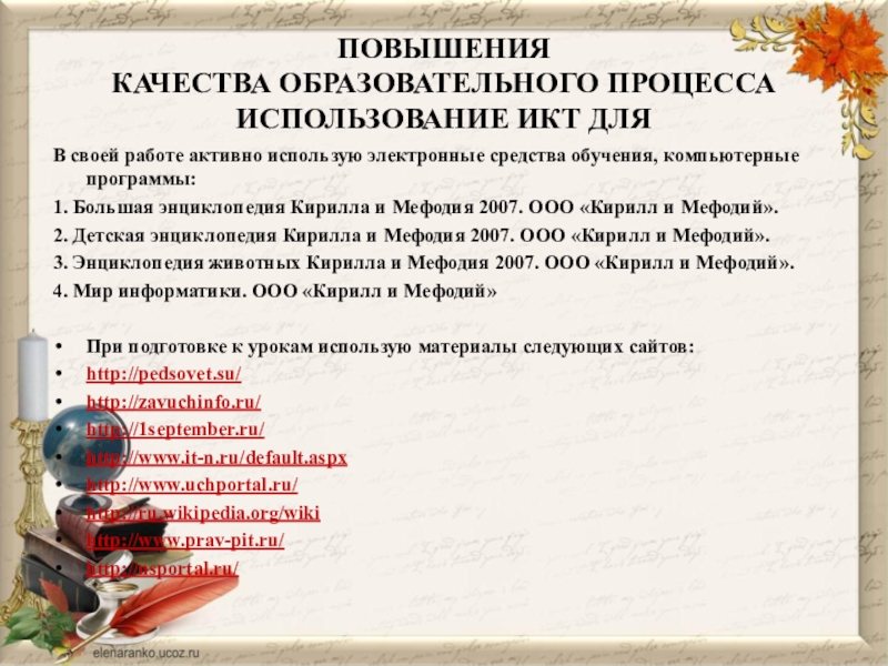 При подготовке к урокам использую материалы следующих сайтов: