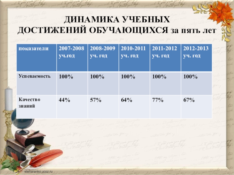 ДОСТИЖЕНИЙ ОБУЧАЮЩИХСЯ за пять лет