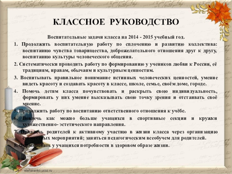 Воспитательные задачи класса на 2014 - 2015 учебный год.