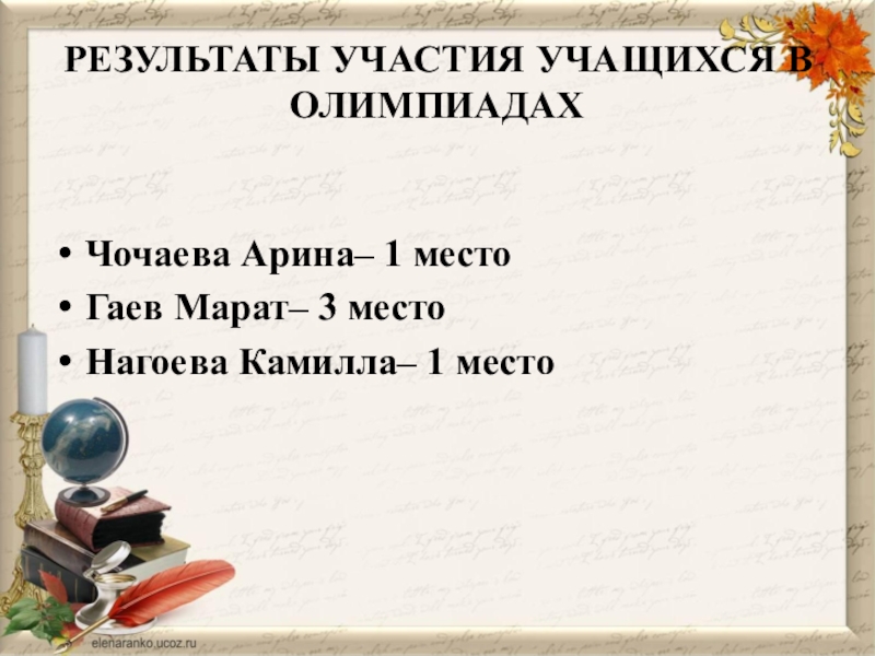 Слайд 11РЕЗУЛЬТАТЫ УЧАСТИЯ УЧАЩИХСЯ В ОЛИМПИАДАХ
