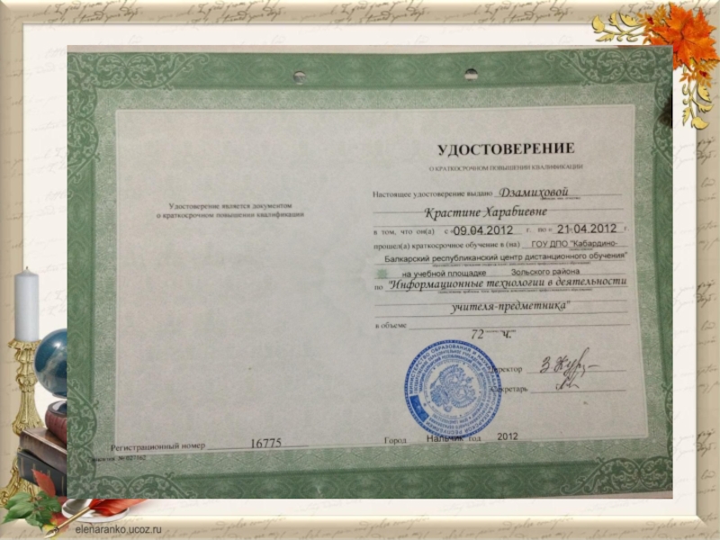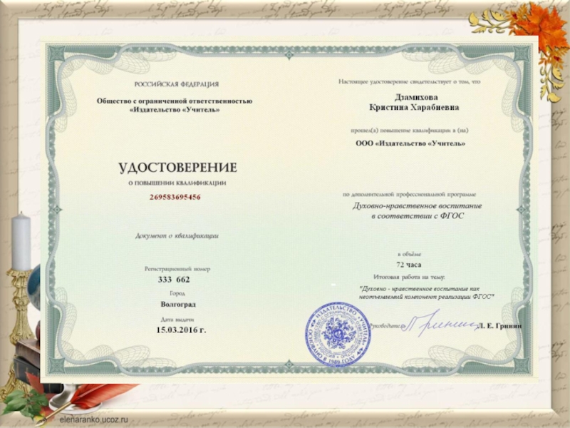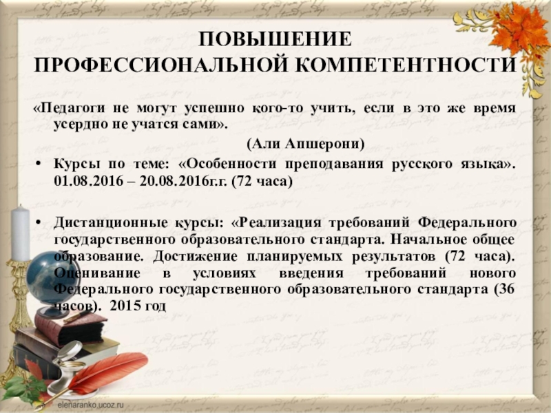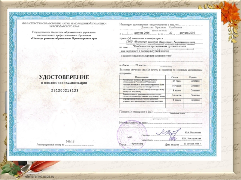 Курсы по теме: «Особенности преподавания русского языка». 01.08.2016 – 20.08.2016г.г. (72 часа)