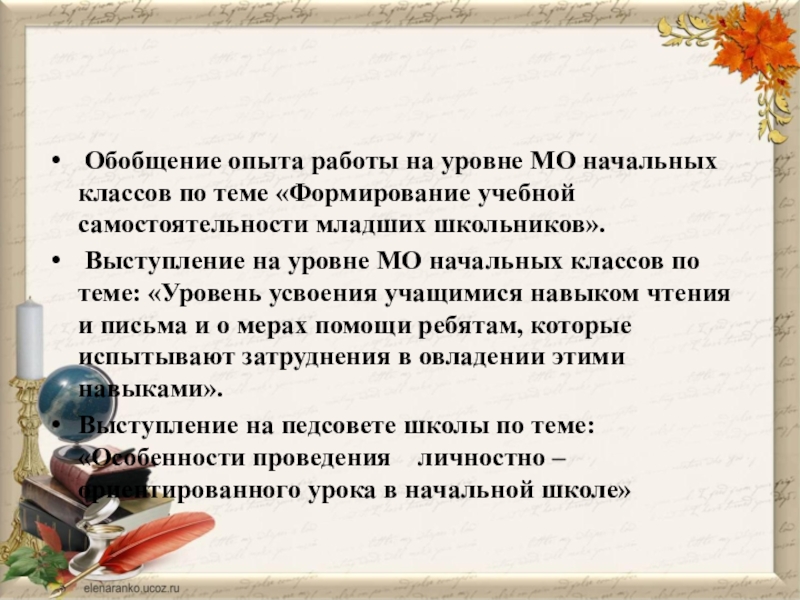 Слайд 13 Обобщение опыта работы на уровне МО начальных классов по теме
