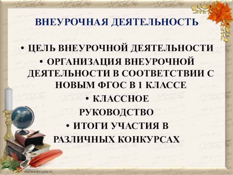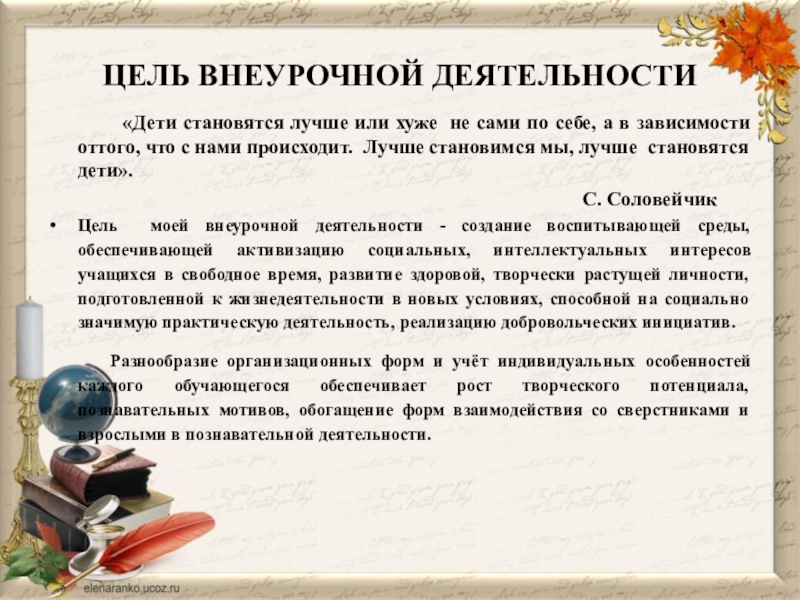 Слайд 20ЦЕЛЬ ВНЕУРОЧНОЙ ДЕЯТЕЛЬНОСТИ