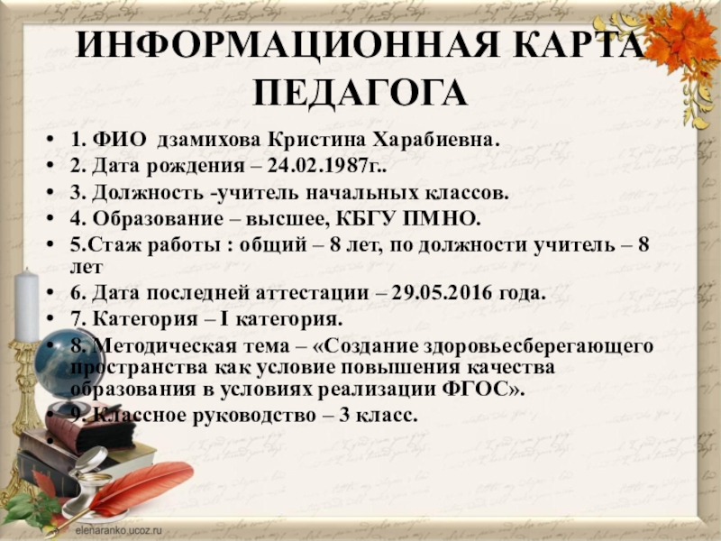 Слайд 5ИНФОРМАЦИОННАЯ КАРТА ПЕДАГОГА
