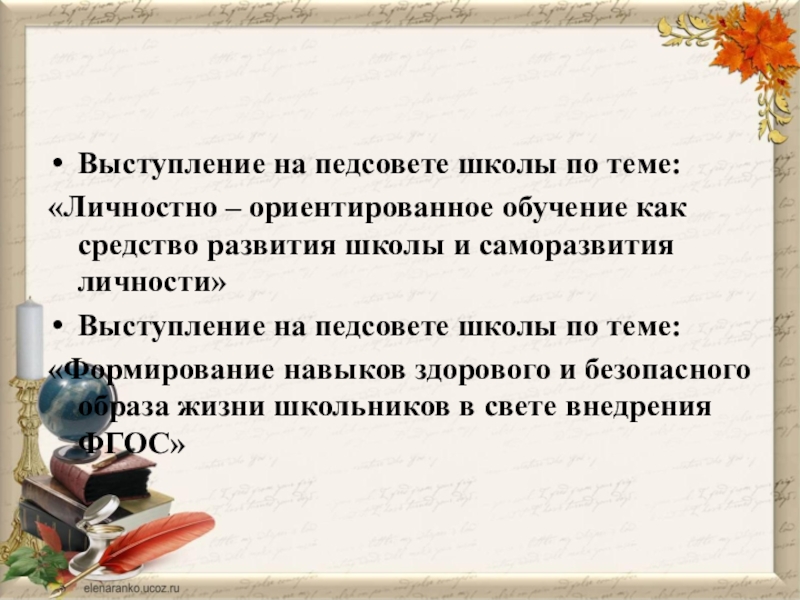 Слайд 14Выступление на педсовете школы по теме: