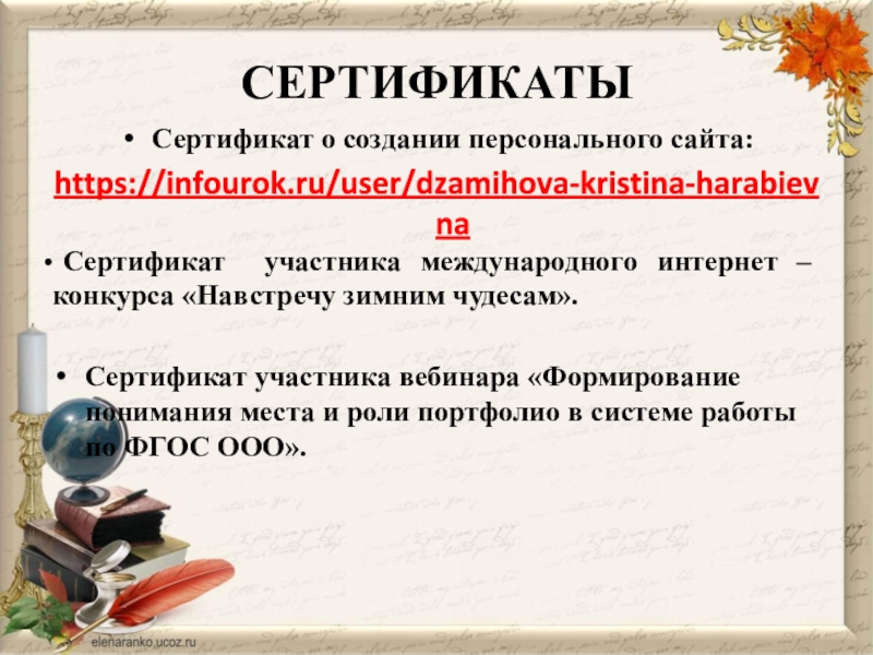 Сертификат о создании персонального сайта: