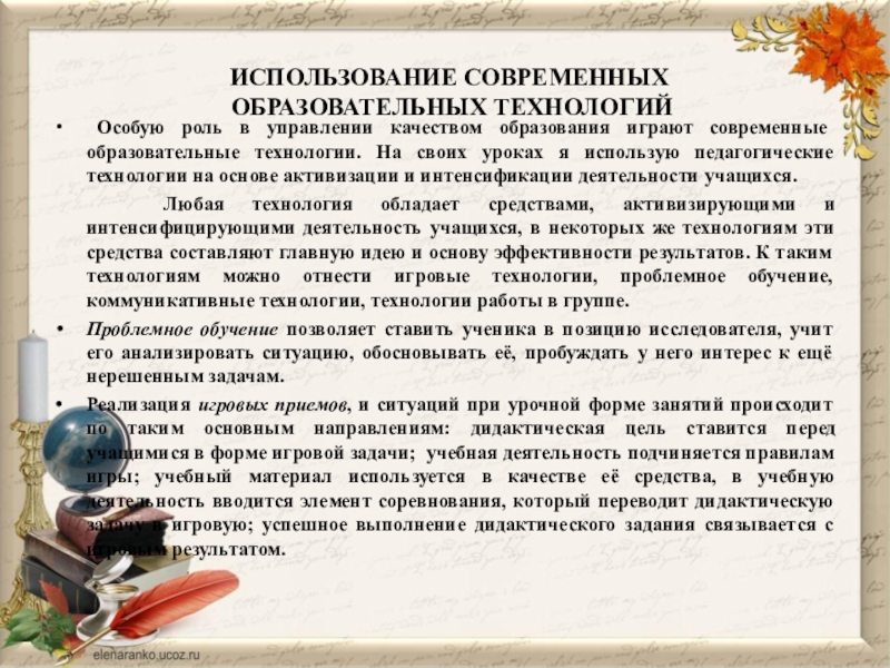 современные образовательные технологии. На своих уроках я использую педагогические технологии на основе активизации и интенсификации деятельности учащихся.