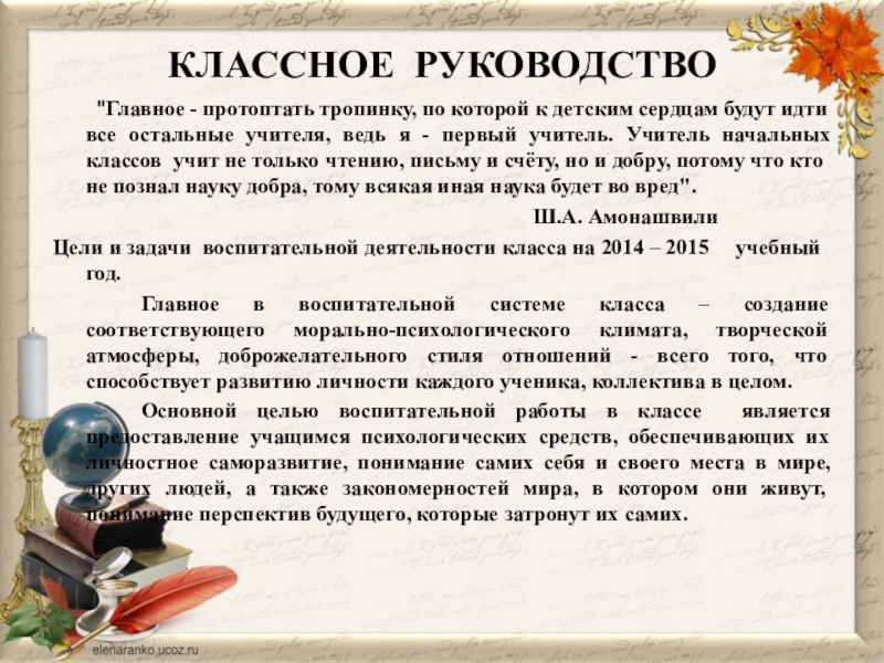 Цели и задачи воспитательной деятельности класса на 2014 – 2015 учебный год.