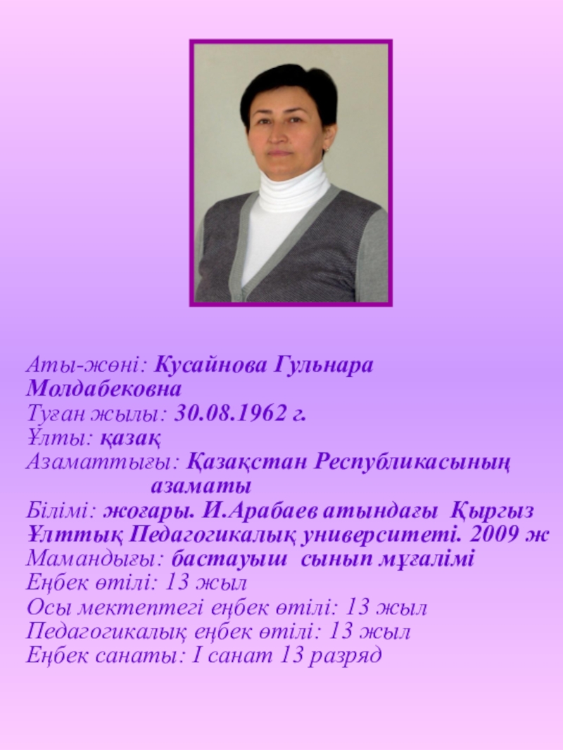 Аты-жөні: Кусайнова Гульнара Молдабековна