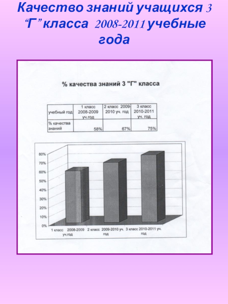 Слайд 68Качество знаний учащихся 3 “Г” класса 2008-2011 учебные года