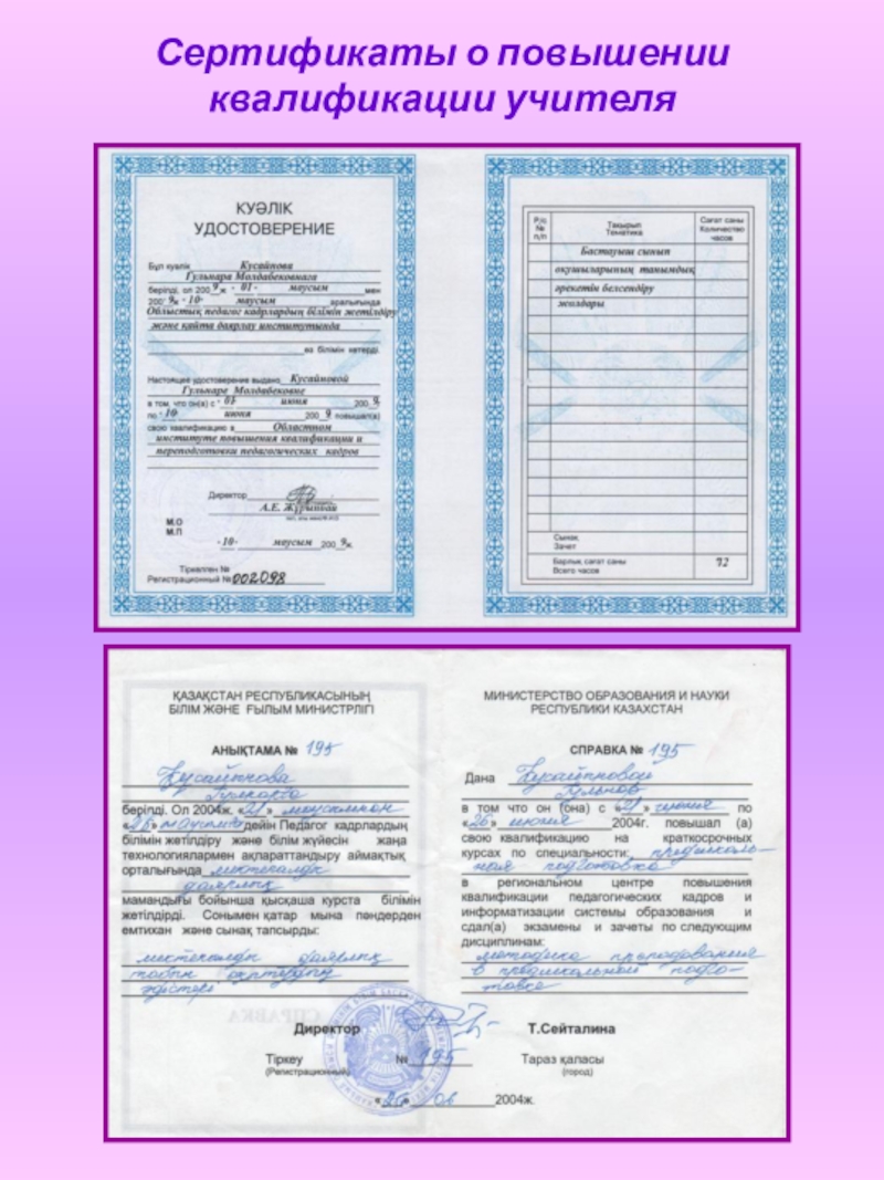 Слайд 9Сертификаты о повышении квалификации учителя