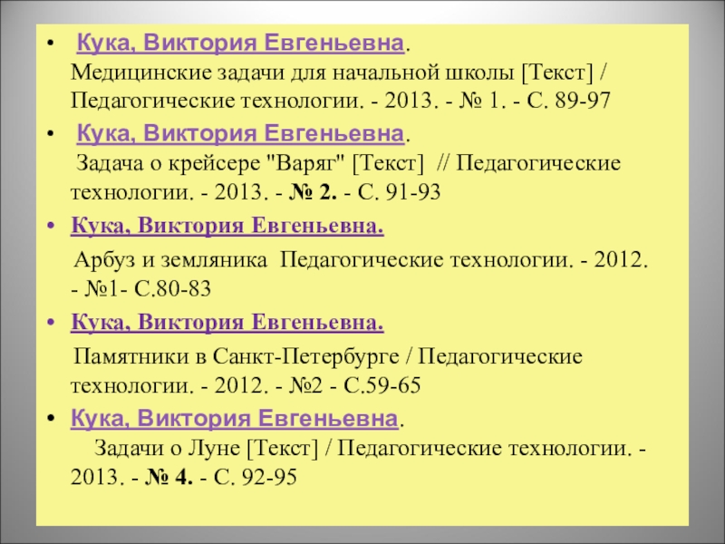 Медицинские задачи для начальной школы [Текст] / Педагогические технологии. - 2013. - № 1. - С. 89-97