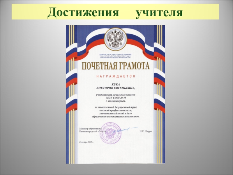 Виктория Евгеньевна обладает высокими профессиональными данными, она в совершенстве владеет методикой преподавания учебных предметов и при этом обладает замечательными человеческими качествами. Благодаря её деятельности наши дети получили хорошие знания по всем предметам начального учебного цикла и овладели необходимыми учебными навыками. Мы родители всегда могли получить профессиональные рекомендации, как развивать своего ребенка, на какие особенности и проблемы необходимо обратить внимание.