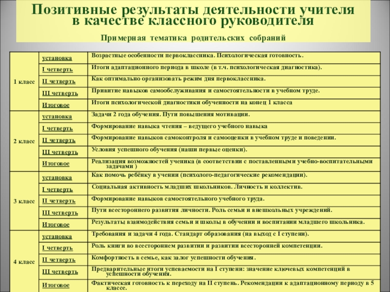 Примерная тематика родительских собраний