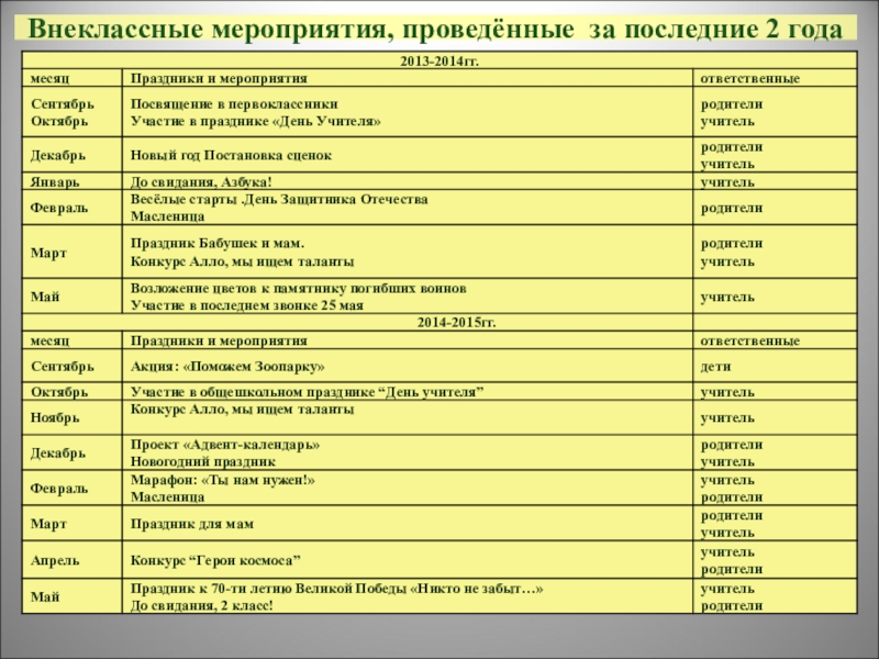 Слайд 39Внеклассные мероприятия, проведённые за последние 2 года