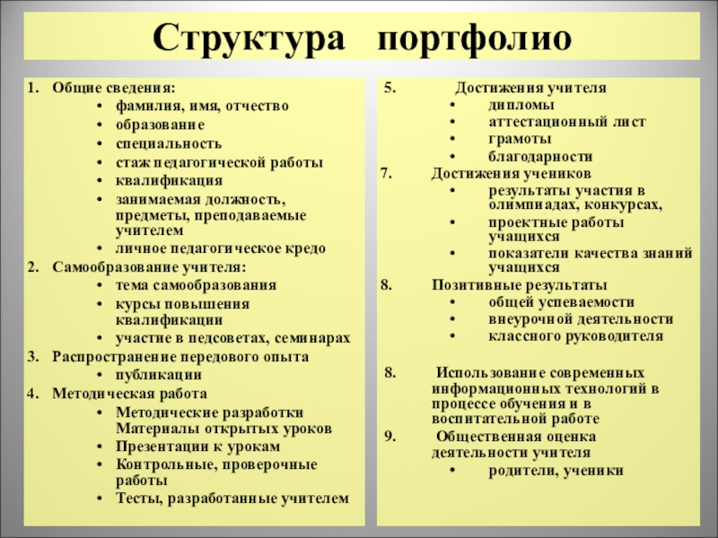 Слайд 3Структура портфолио