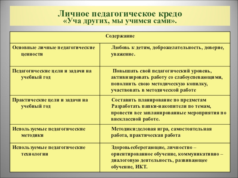 Слайд 4Личное педагогическое кредо