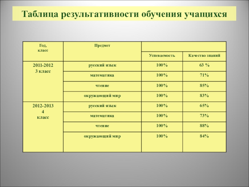 Слайд 32Таблица результативности обучения учащихся