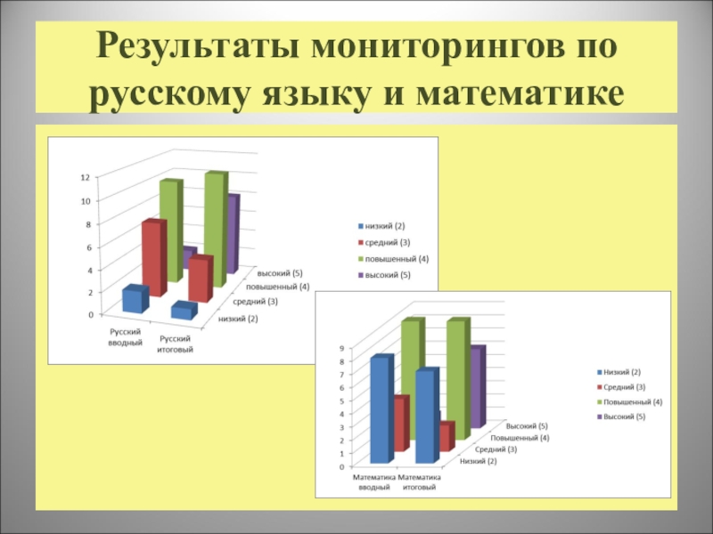 Слайд 8Результаты мониторингов по русскому языку и математике