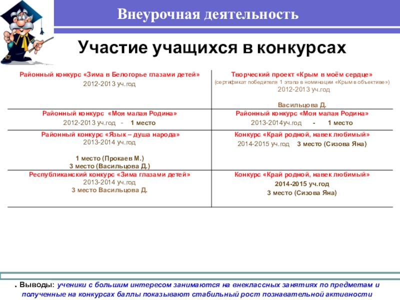 Результаты внеурочной деятельности