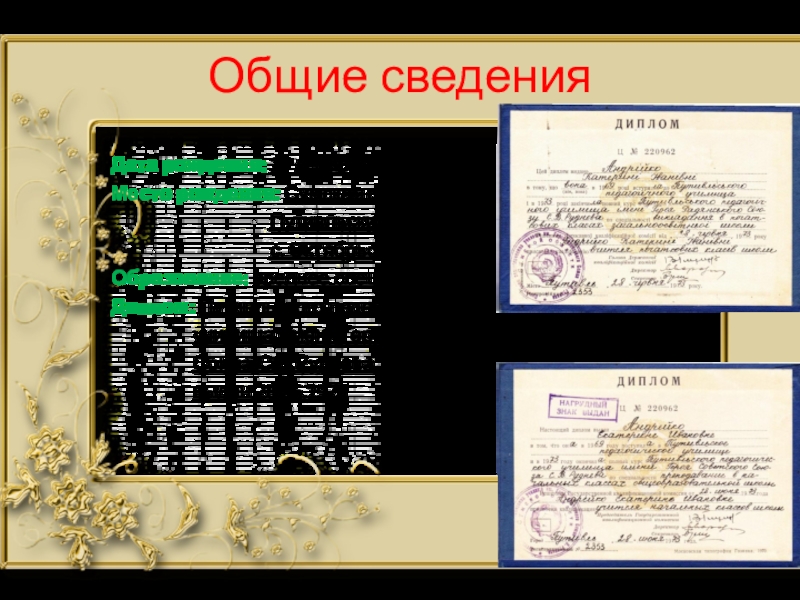 Образование: среднее специальное