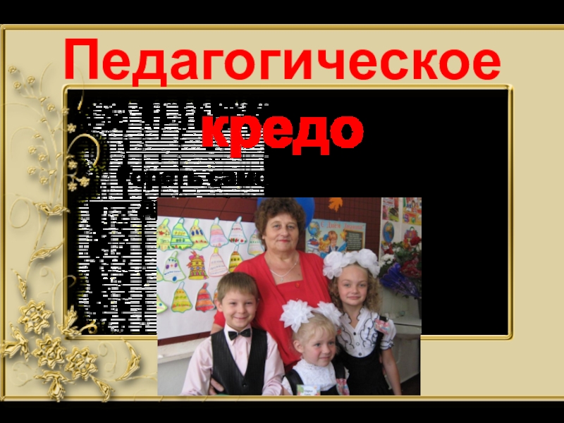 С первых дней работы я поняла, что нужно любить всех детей одинаково: шалуна и послушного, сообразительного и медлительного, ленивого и примерного. Стараюсь делить доброту души поровну между детьми, ведь Доброта и Любовь – главный стимул в работе.