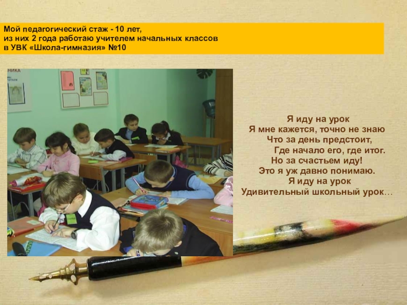 С сентября 2010 года работаю в УВК «Школа-гимназия» №10