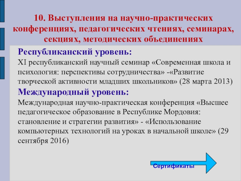Международная научно-практическая конференция «Высшее педагогическое образование в Республике Мордовия: становление и стратегии развития» - «Использование компьютерных технологий на уроках в начальной школе» (29 сентября 2016)