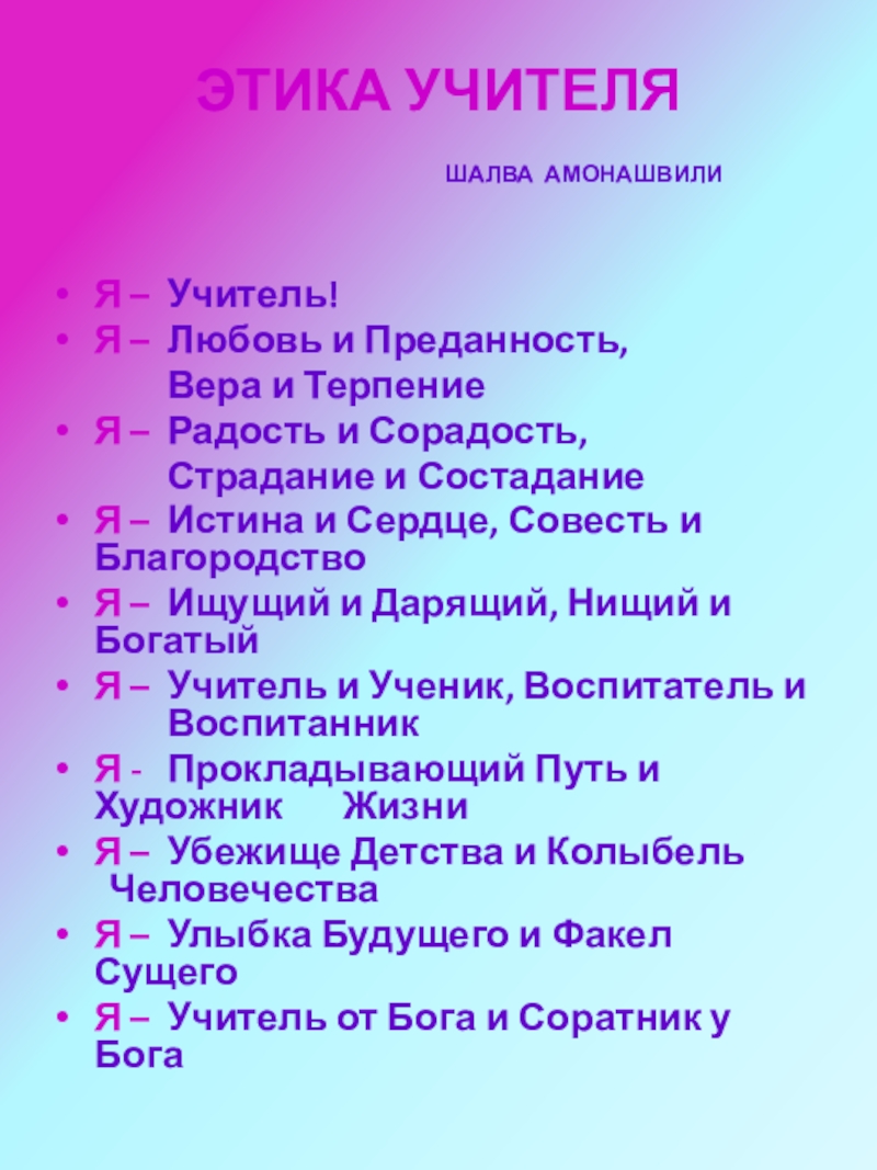 Я – Учитель и Ученик, Воспитатель и Воспитанник