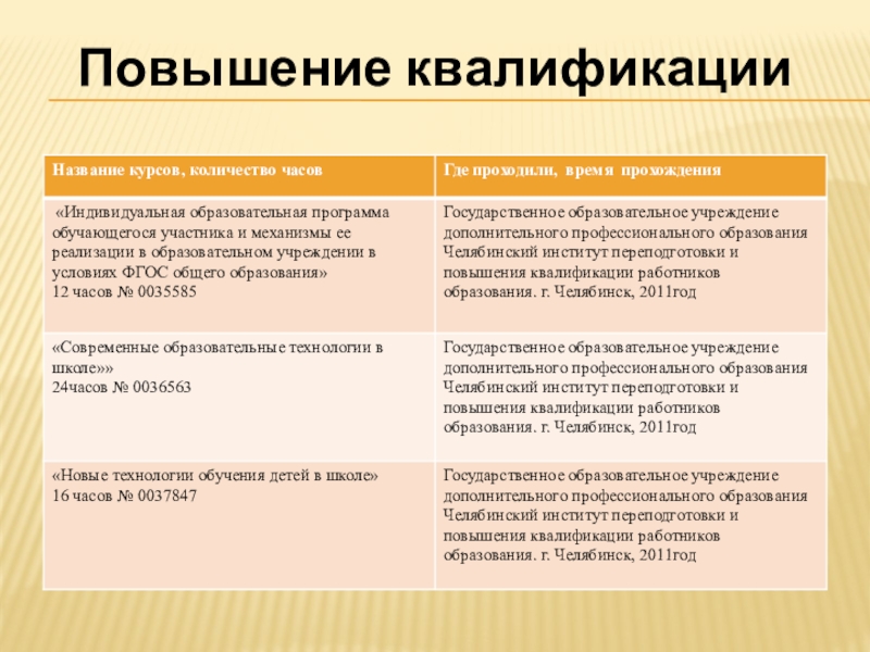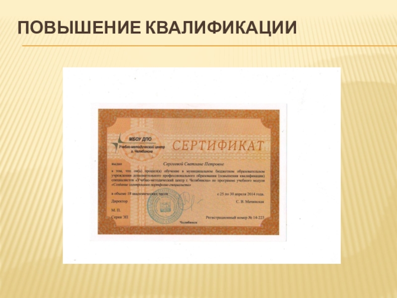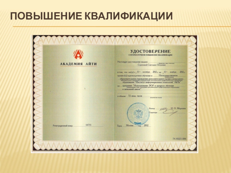 повышения квалификации, каждый год и занимаясь самообразованием.