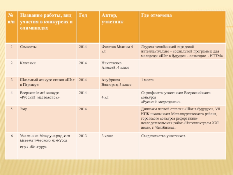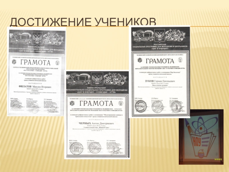 Грамота за подготовку призеров Всероссийского интеллектуального конкурса «Классики» 2012 год.