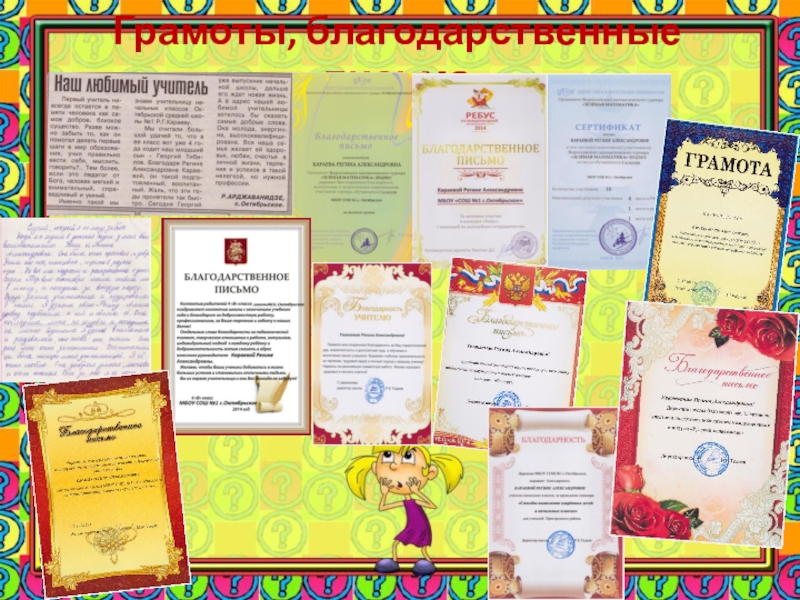 Слайд 9Грамоты, благодарственные письма