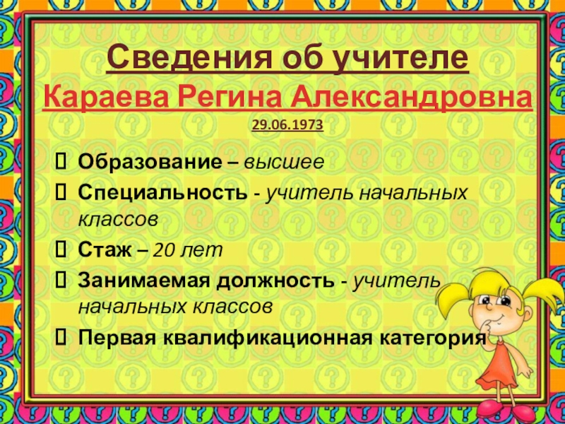 Слайд 5Сведения об учителе