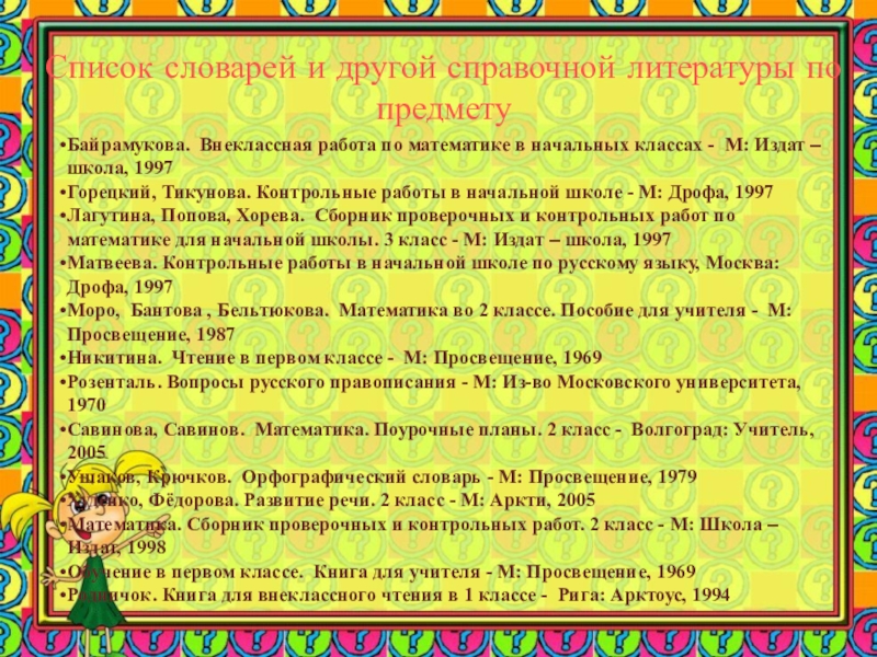 Слайд 46Список словарей и другой справочной литературы по предмету
