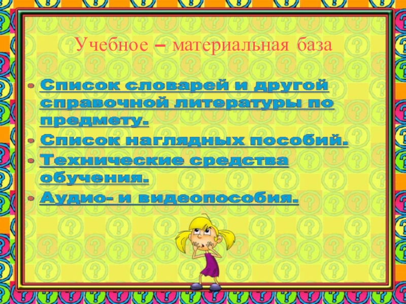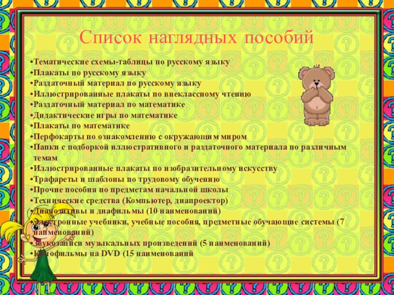 Слайд 47Список наглядных пособий