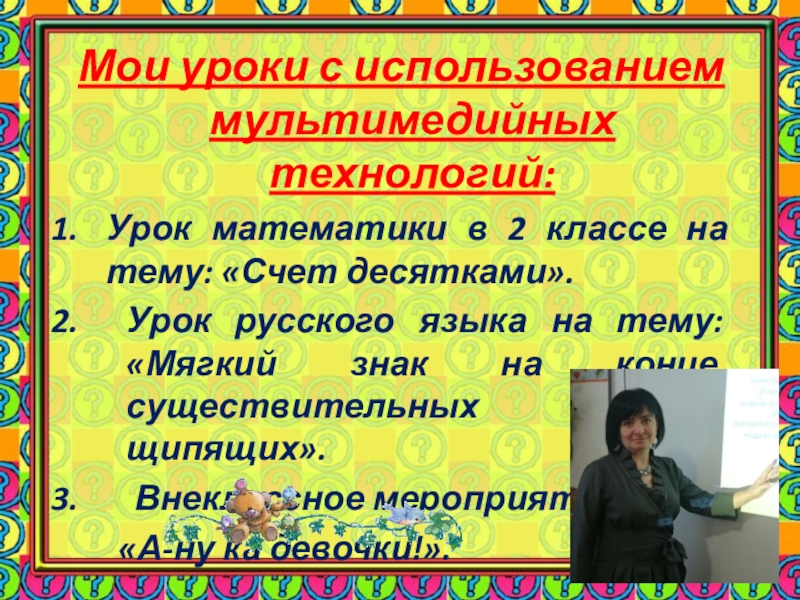 Слайд 24 Мои уроки с использованием мультимедийных технологий: