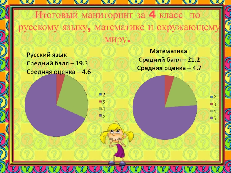 Итоговый маниторинг за 4 класс по русскому языку, математике и окружающему миру.